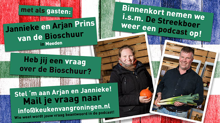 We gaan weer podcasten! Samen met Sandra van De Streekboer gaan we binnenkort op bezoek bij Jannieke en Arjan Prins van de Bioschuur in Meeden. Heb jij een vraag over de Bioschuur? Stel ‘m aan Arjan en Jannieke! Mail je vraag naar info@keukenvangroningen.nl (of reageer via onderstaand formulier) en wie weet wordt jouw vraag in de podcast besproken!